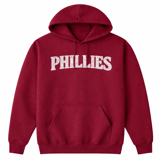 ↔ Swipe for morePhiladelphia Lace Hoodie – Vintage Phillies Script Garnet Hoodie